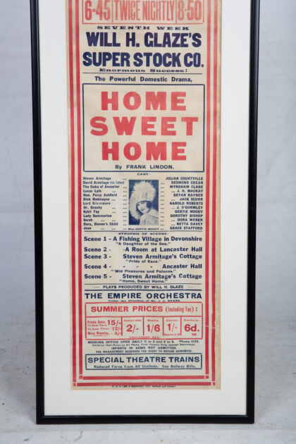 A framed, original July 15th 1929 poster advertising the spectacles available to see at the Belfast Empire Theatre.
