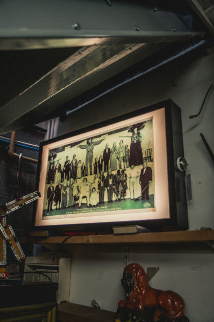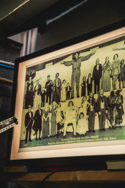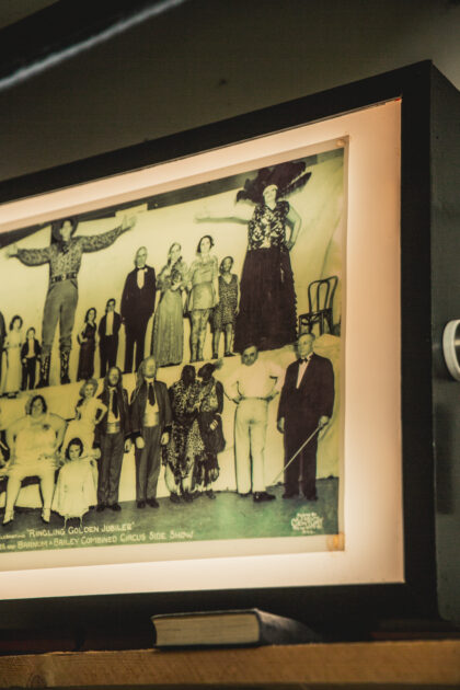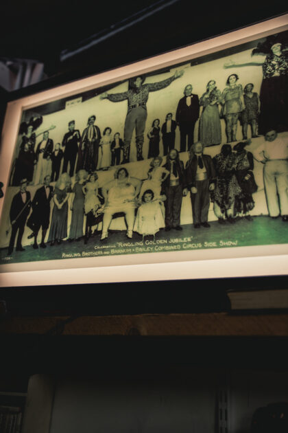 Backlit portion also print of the world famous Ringling Brothers freak show.