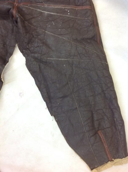 Heavyweight sheepskin fleece flight trousers in need of some TLC.