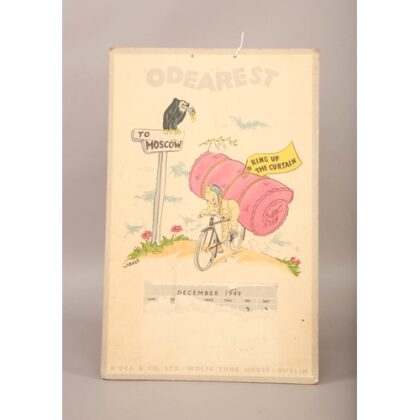 This was once a 1949 calender advertising Odearest Mattresses. The months have been removed and now only December remains. This is a large poster on board.