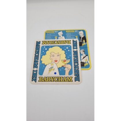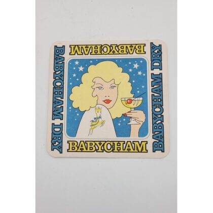 A Babycham Dry cardboard advertisement depicting women of different decades.