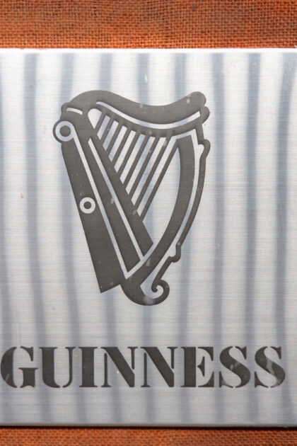 Stainless steel Guinness advertising wall plaque/sign. The stripes shown in the photos are caused by the light box and are not actually part of the sign.