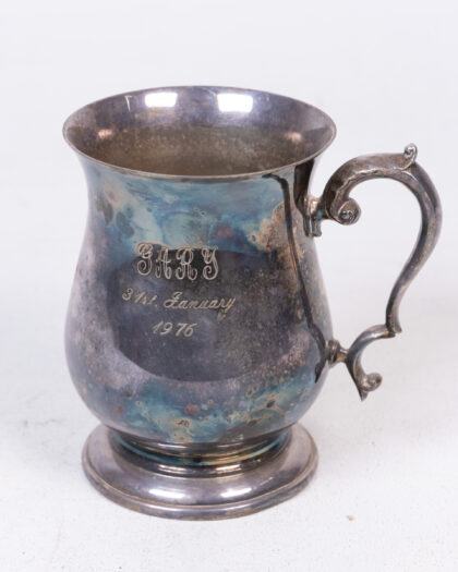 Vintage silver plated tankard, engraved 'Gary, 31st January 1976'. Shows wear, but adds to the vintage charm. Perfect for display.