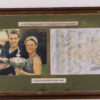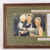 Framed and signed photograph commemorating Stephen Hendry, seven times Embassy World Snooker Champion. The framed display features a photograph of Stephen Hendry, a snooker legend, accompanied by his family. Next to the photo is a signed snooker tournament scoreboard by various players. The frame is wood with a decorative rope edge and a green matte board, and has been previously loved, showing some signs of age and wear commensurate with its history. This would be perfect for a snooker fan, collector of memorabilia, or anyone looking for a unique piece of sports history.