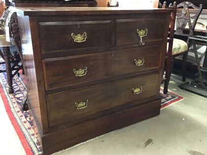 Gorgeous set of two over two type drawers. Solid mahogany with brass pull-handles and keyholes. These well-made drawers glide so smoothly and are the perfect size for smaller rooms or when you just need that extra bit of storage.
