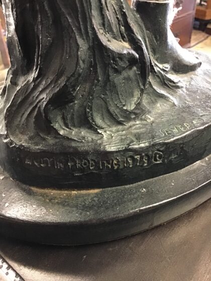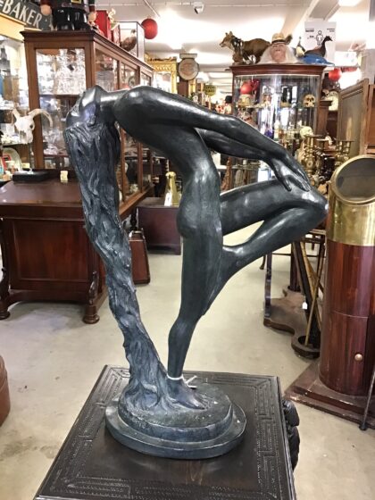 Very stylish ornament cast in a bronze-like metal, standing 56cm tall.