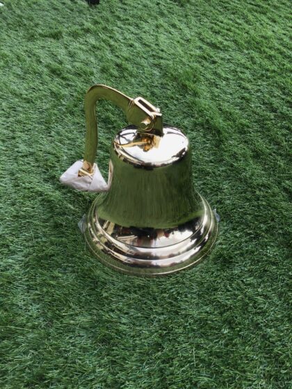 This 8inch Ship-styled brass bell is ideal for a door bell or to call the kids in for dinner. The bell also adds a feature piece to any wall or could be used in a home bar to call last orders.