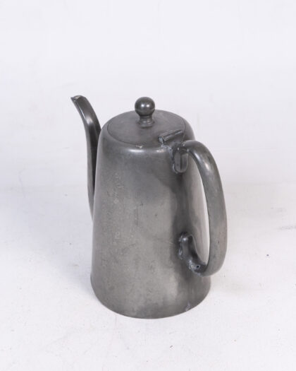 Antique style teapot, made by Fattorini in Harrogate. Silver plated metal with hinged lid. Shows signs of wear, adding vintage charm.