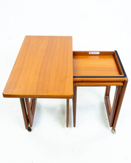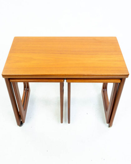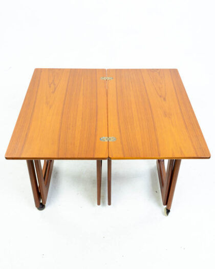 Mid-century teak nest of three tables, each with a folding top. Made by A H Mcintosh, Kirkcaldy, Scotland. Good condition.