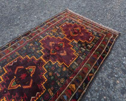 This exquisite Afghan Beluchi rug features a vibrant multicoloured field with intricate geometric patterns, showcasing the rich tradition of nomadic craftsmanship. Measuring 195cm x 107cm, it is handwoven with natural dyes, offering a touch of timeless elegance to any interior space.