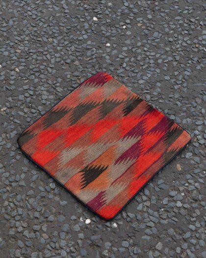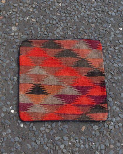 Infuse your space with warmth using this Afghan kilim pillow cover. Featuring vibrant reds and intricate geometric patterns, each piece is woven by Hazara artisans over several weeks. The pillowcase is made from a repurposed kilim rug, bringing heritage and charm into any room, with a practical zip at the back for easy filling.