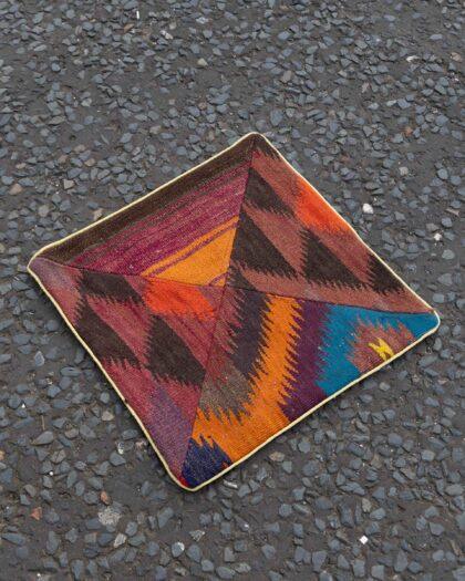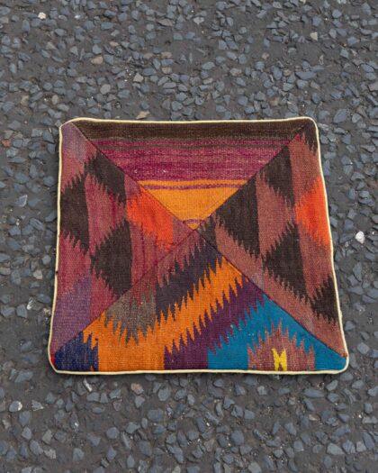Bring Afghan tradition to your living space with this beautiful kilim pillowcase. Handwoven by skilled Hazara artisans, it showcases deep browns and tribal chevron patterns. Made from a vintage kilim rug, it’s designed with a zip on the back, perfect for effortless filling and a cozy, authentic look.