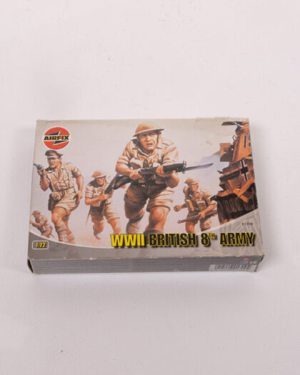 Vintage Airfix WWII British 8th Army model kit, 1:72 scale. Unbuilt, in original box. Box shows wear.