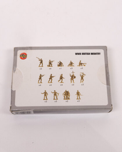 Vintage Airfix WWII British Infantry plastic model kit. Boxed, suitable for collectors or model makers. See images for condition.