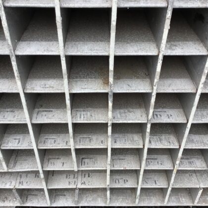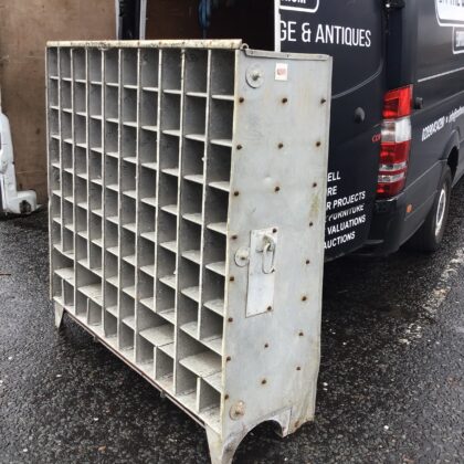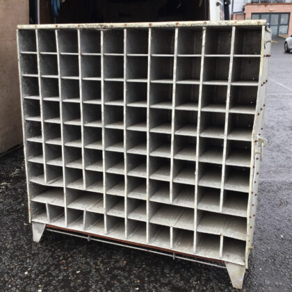 The pigeonholes are 39cm deep, and 14x14cm square, with four double-width holes on the second row.
