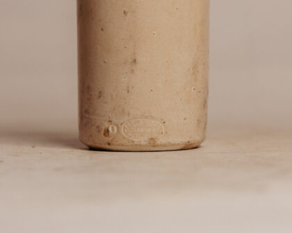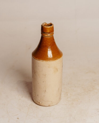 Antique Andrew A. Watt & Co. Ltd. stoneware bottle from Londonderry. Two-tone glaze, Port Dundas Glasgow mark. Chips at the top. 21cm high.