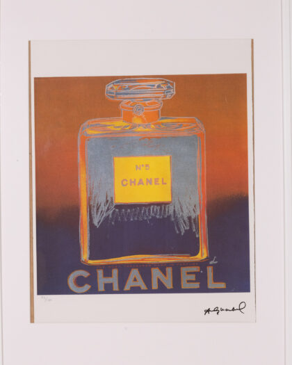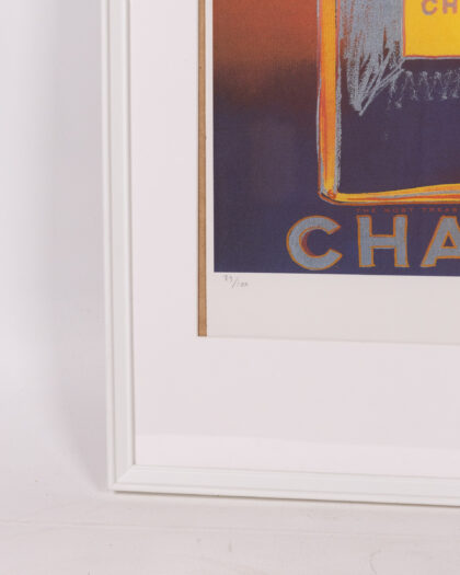 Explore the iconic artistry of Andy Warhol with this authentic Chanel Lithograph print. Expertly framed, this piece is a must-have for art enthusiasts and collectors. Includes a certificate of authenticity. Numbered 73/100