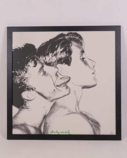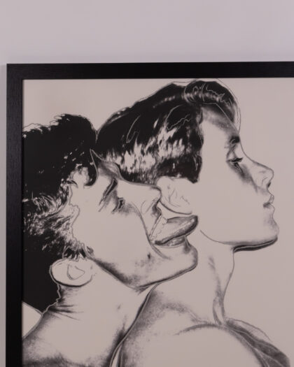 Framed Andy Warhol art print featuring two male figures. Contemporary style and ready to hang. Includes Certificate of Authenticity.