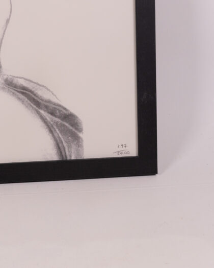 Framed art print featuring two overlaid portrait sketches. The sketches feature a line drawing of two shirtless males. One is looking forward and the other is reaching over and sticking his tongue out to lick the neck of the other. A green Andy Warhol signature is printed on the bottom. It is a white print on black paper with a black frame. There are two numbered notations in the lower right corner. The piece is accompanied by a certificate of authenticity. No condition issues.