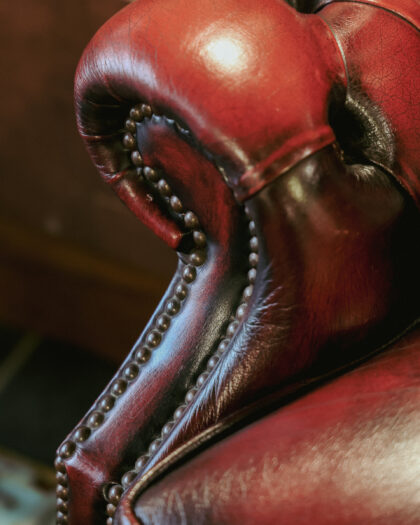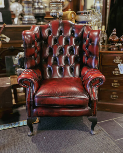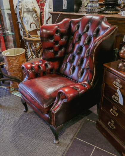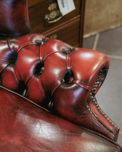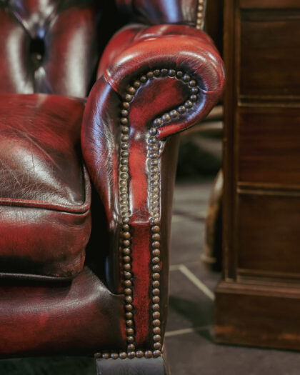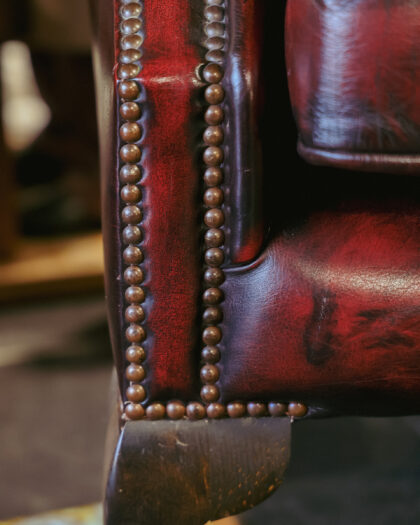Oxblood Leather Chesterfield Wing Back Armchair