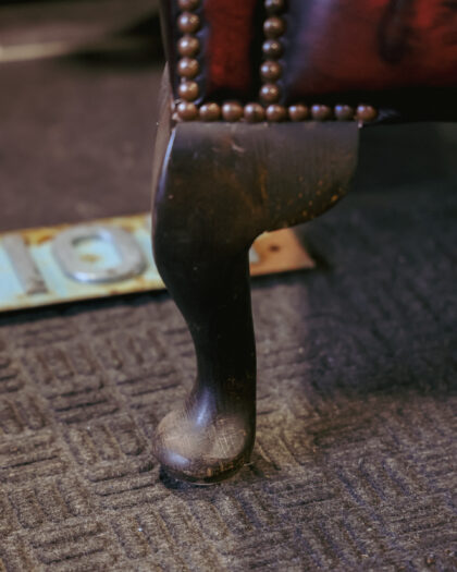 Elevate your space with timeless sophistication courtesy of our antique chesterfield armchair - a true statement piece exuding elegance and charm. Crafted from luxurious dark oxblood leather, this exquisite chair boasts a classic wingback design and cabriole style legs, perfect as a library or fireside chair which exudes comfort and style. It offers a generous seating area while maintaining an impressive presence in any room.