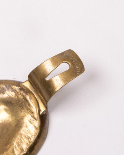 An antique brass dental impression tray, marked "Ehricke-Hoffel" and "D.R.G.M." This piece of medical history features a distinctive shape designed to take impressions of the mouth. The golden-hued brass shows signs of age, adding to its vintage charm. It's a unique find for collectors of medical memorabilia or those with an interest in historical dental practices. Could be displayed in a study or office.
