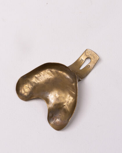 Vintage brass dental impression tray by Ehricke-Hoffel. Features unique design. Great medical collectable.