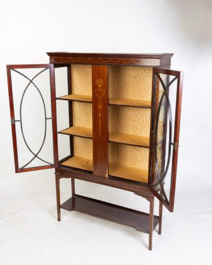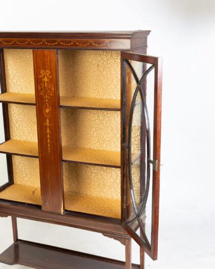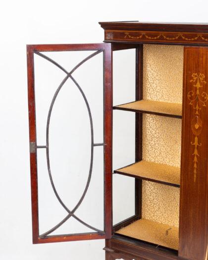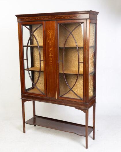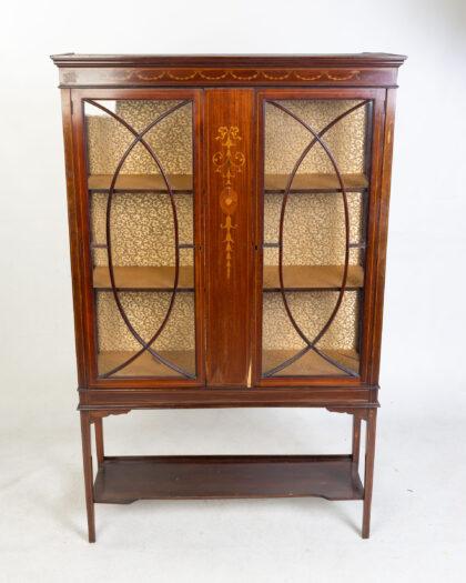 Antique Inlaid Mahogany Display Cabinet on Stand
