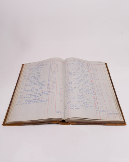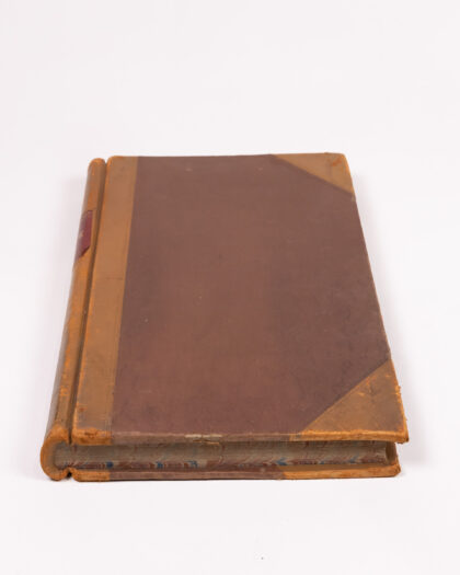 Antique leather ledger book featuring gold detailing. Shows wear consistent with age, adding to its vintage charm and historical appeal.