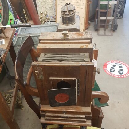 Complete, extendable with the original bellows. There is signs of wear and tear but this adds to the character of the piece.