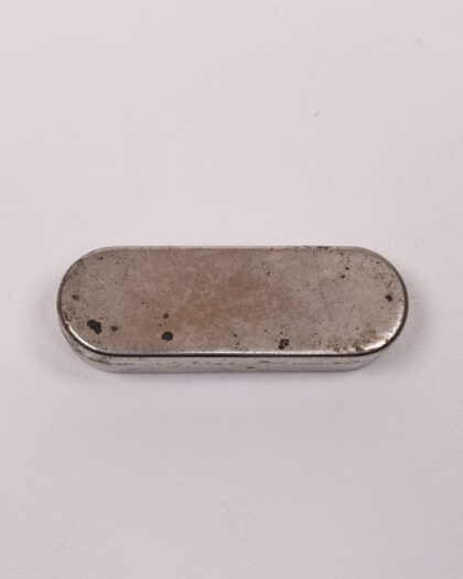 Antique Medical Syringe Set with Needles and Case. This set features a metal syringe, two needles, and a fitted metal case. The syringe appears to be made of nickel-plated brass or a similar metal alloy. The case has an oval shape with a hinged lid. Signs of age and use are visible, including tarnish, scratches, and minor dents on the case. The syringe is untested. As a vintage medical item, it is intended for display and collecting purposes only.