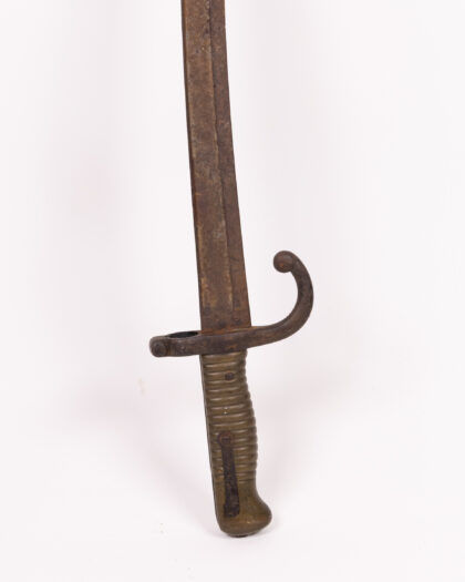 A vintage sword with a curved blade. Showing its age with patina and wear - a great decorative historical piece!