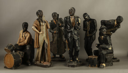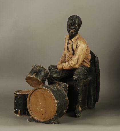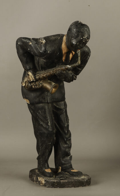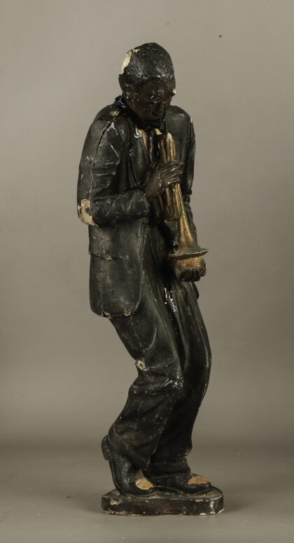 Poor condition overall with lots of neglect damage and some missing segments, but this is a rare find of a much-copied genre of Jazz Band figures.