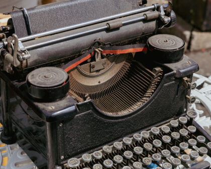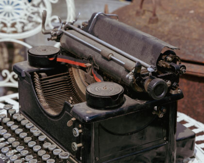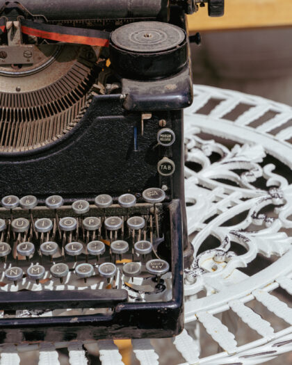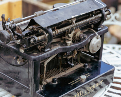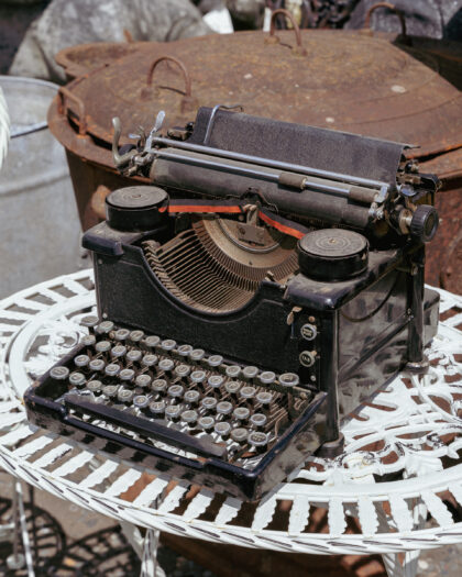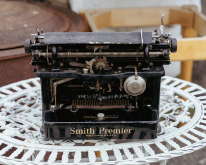 An authentic Smith Premier typewriter, showcasing classic design and functionality. Ideal for collectors, enthusiasts, or as a decorative piece. This vintage typewriter adds a touch of history and character to any home or office setting.