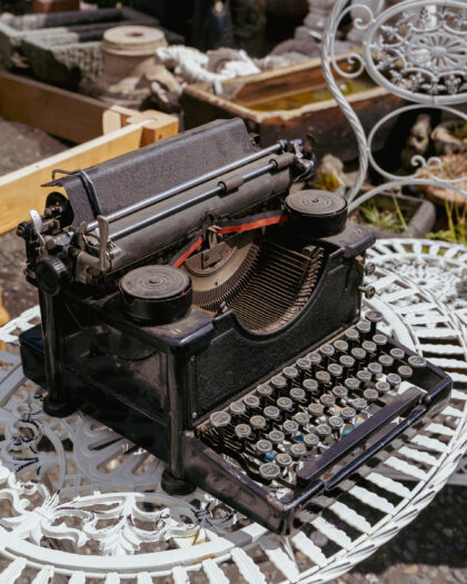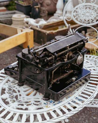 Vintage Smith Premier typewriter. A striking piece of history, perfect for collectors and enthusiasts. Add character to your home or office.