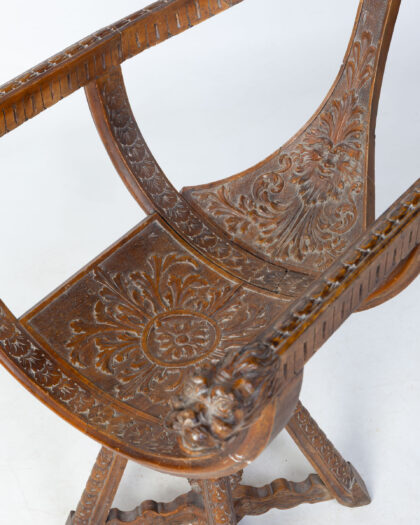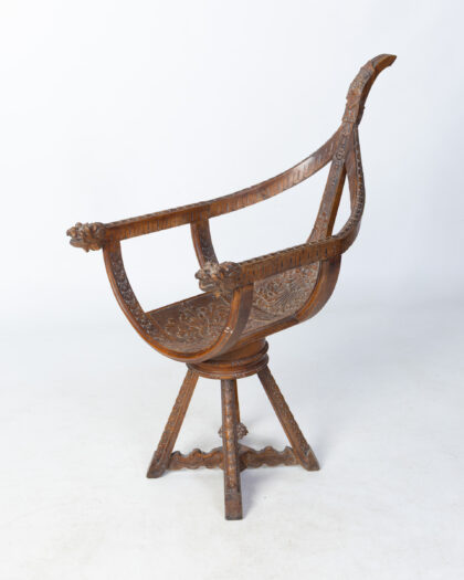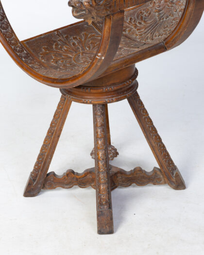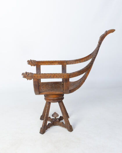 Unique antique Venetian gondola carved wooden swivel chair featuring lion head armrests and intricate floral detailing. Solid construction and great statement piece. Fantastically hand carved all over.