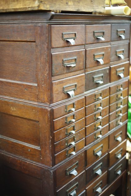 Circa 1920's antique bank of library card/ specimen/ index drawers
