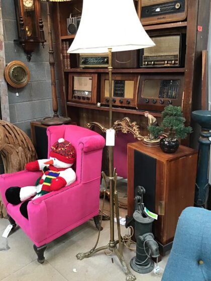 Very elegant sold brass floor lamp in the art nouveau style, recently fully lamp can be extended or lowered to adjust for height.