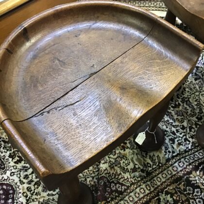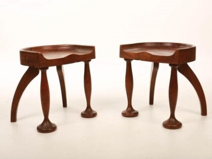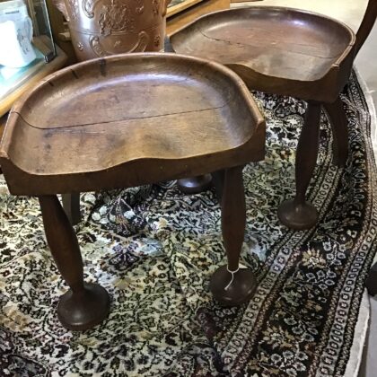 Stunning pair of Edwardian arts and crafts oak stools.