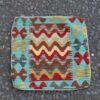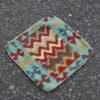 Inspired by traditional Afghan designs, this kilim cushion cover features a charming wave pattern in earthy shades of red, yellow, and teal. Handcrafted by Hazara artisans over weeks, it brings authentic Afghan craftsmanship into your home. The pillow cover includes a zip on the back for easy stuffing and maintenance.