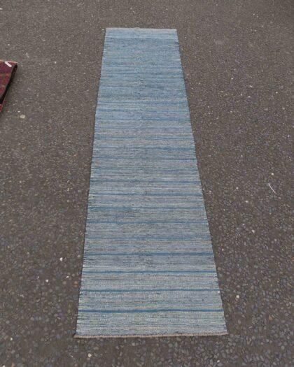 Discover the exquisite craftsmanship of our Authentic Hazara Kilim Runner, measuring 341cm x 82cm.