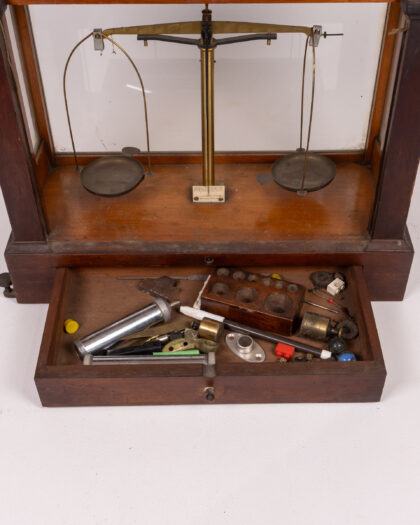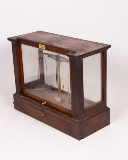 Vintage Baird & Tatlock Balance Scale in Wood and Glass Case with Drawer. Perfect collectible home or office decor.