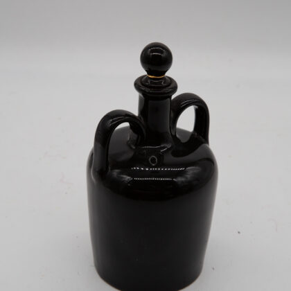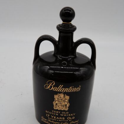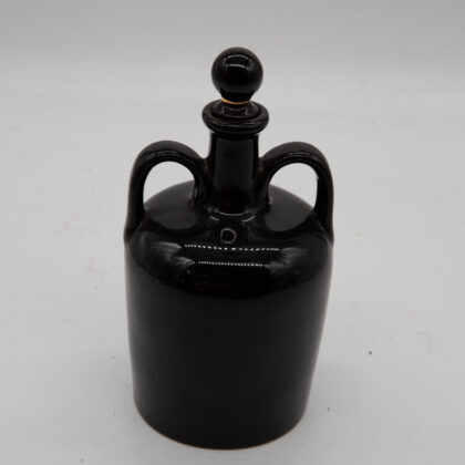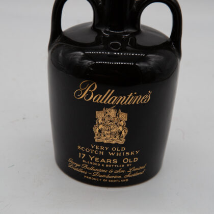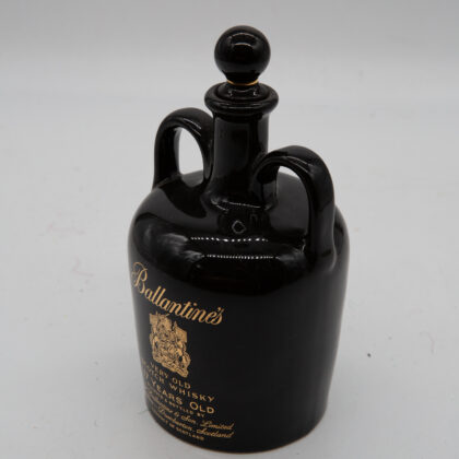 A black glazed ceramic flagon with lid for Ballantine's Scotch Whisky.
