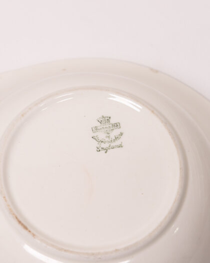 This elegant Barratts of Staffordshire England bowl and lid set features the classic Willow pattern in a blue and white design. Crafted from ceramic, the bowl has a gently scalloped rim with an intricately detailed lid, complete with a charming knob handle. The interior of the bowl is plain white with some minor discolouration from age/use. The base of the bowl is stamped with the Barratts mark, certifying its authenticity and origin. This vintage bowl is a lovely piece for collectors or as a decorative accent for any space. In very good vintage condition.