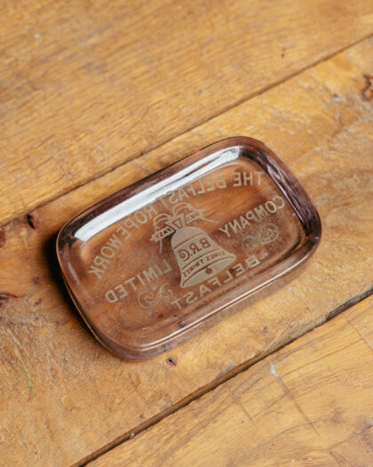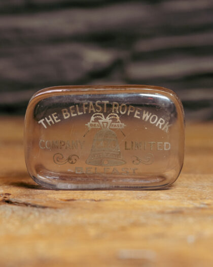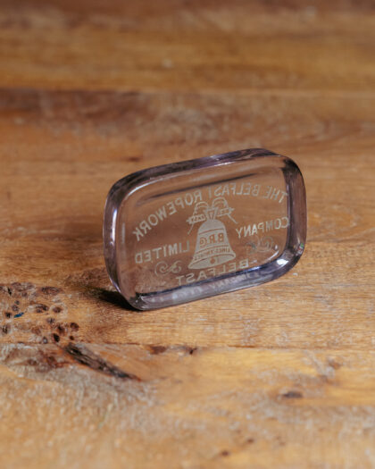 A glass paperweight for The Belfast Ropework Company Limited.