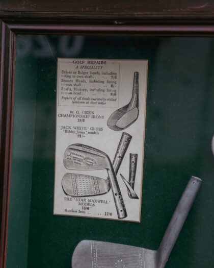 Elevate your home decor and celebrate your love for golf with this stunning Golf Club Shadow Box made by Benham & Froud Sporting Goods Manufacturers and Suppliers London & Dublin. Crafted with meticulous attention to detail, this shadow box offers a unique and stylish way to display the history of golf equipment.