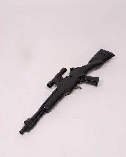Vintage black plastic toy rifle complete with scope. This toy is perfect for imaginative play and comes in good condition. There is some minor wear from use. A great gift for a child interested in role playing or action figures.