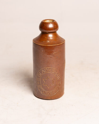 A brown stoneware bottle for Blackshaw Stockport.