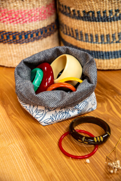 This Blue Floral x Tweed Handmade Fabric Pot made in collaboration with Kapdaa–The Offcut Company who take fabric offcuts and samples and turn them into wonderful new products! They work with huge brands in fashion and automotive industry… AND US!