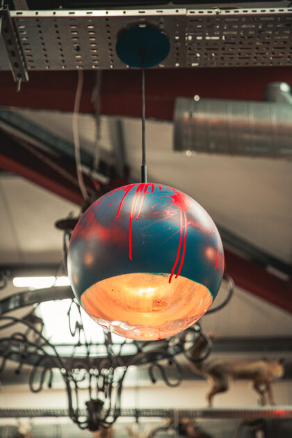 Samuel Dalton, is local to Belfast. With a passion for graffiti and street art, Dalton brings a fresh and urban perspective to his reworked chrome pendant lights by Tom Dixon. His use of spray paint techniques and vibrant colours create a bold and striking finished product that is sure to make a statement in any space.